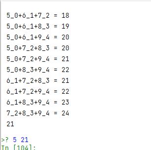 #print("{}_{}+{}_{}+{}_{} = {}".format(A[i] , i, A[j] , j , A[k] , k , B))