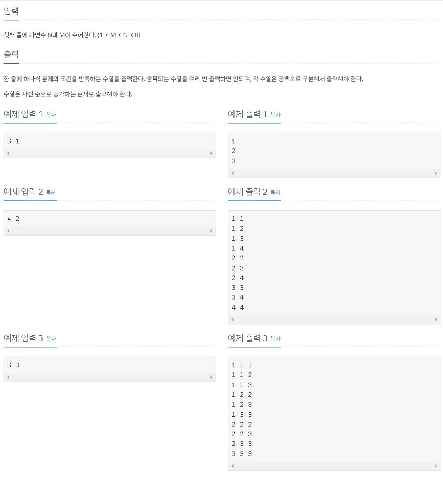 [백준 파이썬 15652번]N과M_4★백트래킹★visited리스트 앞부분 고려