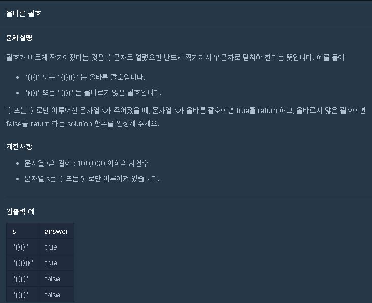 ★STACK★올바른 괄호[프로그래머스]
