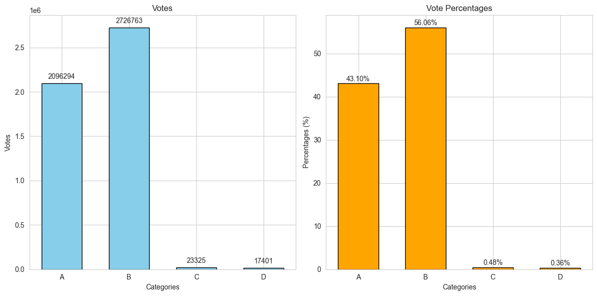 plt.text(i, v + total_votes * 0.01, str(v), ha='center', fontsize=10)