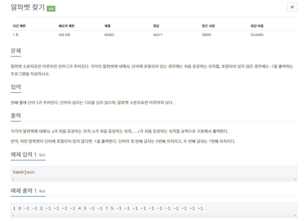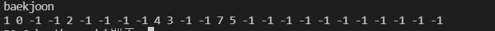 즉, baekjoon --> a는 ==> 1번째 인덱스위치 b는 ==> 0번째 인덱스 위치