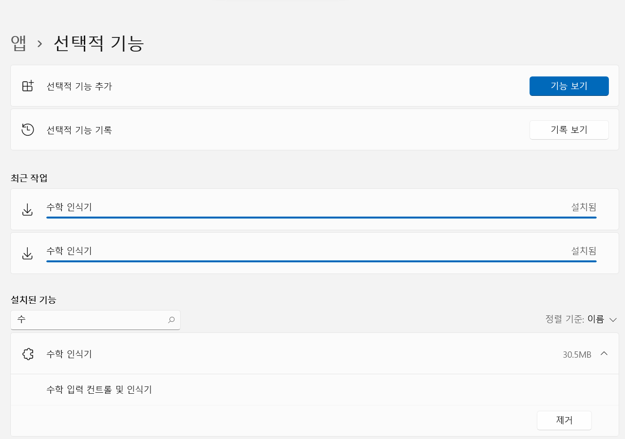 Windows 11 업데이트 시 MATH INPUT PANEL 이 사라져 있다.
