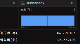 ==> 외식비의 흩어진 정도가 1.13배 정도 크다