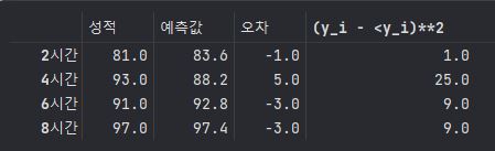 D['(y_i - <y_i)**2'] = (D['오차'])**2