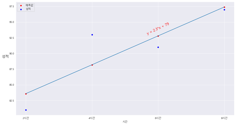 #plt.legend(labels = ['예측값', '성적' ])