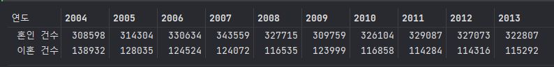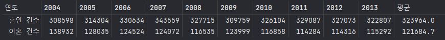 A.index = ['연도' , '혼인 건수' , '이혼 건수']