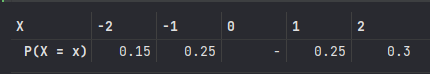 p_x = [0.15 , 0.25 , '-' , 0.25 , 0.3]