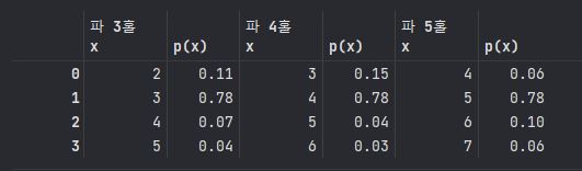 A.columns = [['파 3홀','파 3홀','파 4홀','파 4홀' , '파 5홀' , '파 5홀'], ['x','p(x)','x','p(x)' , 'x','p(x)']]