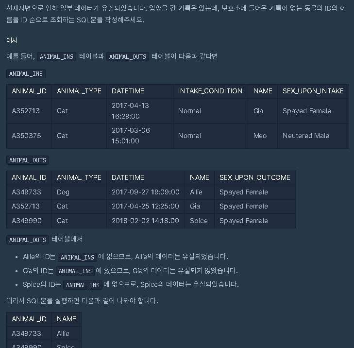 [프로그래머스 ORACLE SQL]없어진 기록 찾기★LEFT JOIN★NOT IN★VER3.0