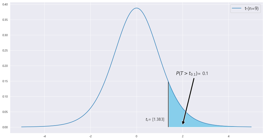 ax.text(1.71 , .17, r'$P(T>t_{0.1})$' + f'= {0.1}',fontsize=15)
