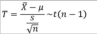 ==> 모분산이 알려지지 않은 정규모집단에서 크기 n인 표본을 선정할때, 표본평균 |X의 표준화 확률변수를 T로 나타낸다.