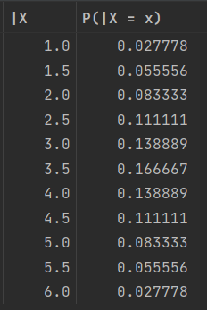 a.iloc[0][5] = a.iloc[0][5] - a.iloc[0][4]**2 #분산 = |X**2 * P(X) - 평균**2