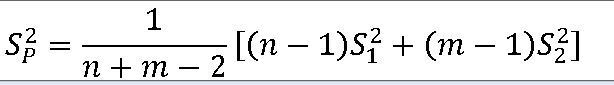 s_p**2 = (1/ n+m-2) * ( (n-1)*s_1**2 + (m-1)*s_2**2 ) = (1/30) * (15*32.5 + 15*34.2) = 33.35