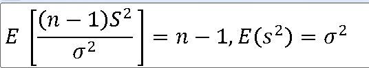 ==> 크기 n-1로 나누어야 불편성을 갖으므로 표본분산을 정의 할때 n-1로 나누어 정의한다.