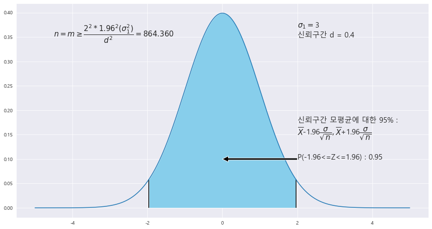 ax.text(2 , .35, r'$\sigma_{1} = $' + f'{o1}\n' + f'신뢰구간 d = {d}',fontsize=15)