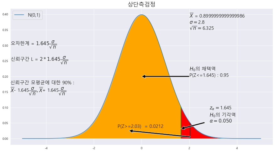 1. 모평균에 대한 상단측 검정