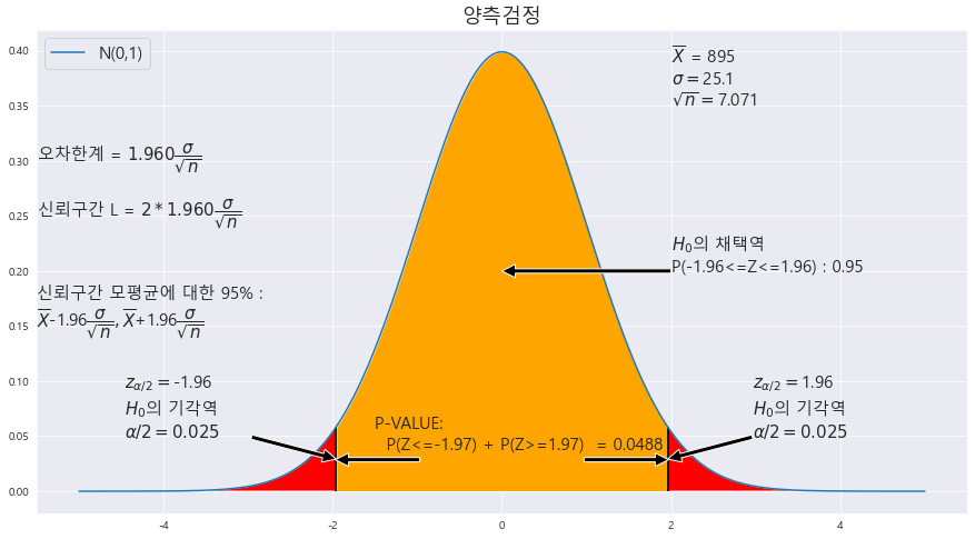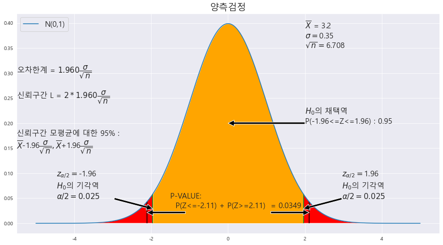ax.set_title('양측검정' ,fontsize = 18)
