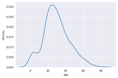 sns.kdeplot(data=titanic , x='age')