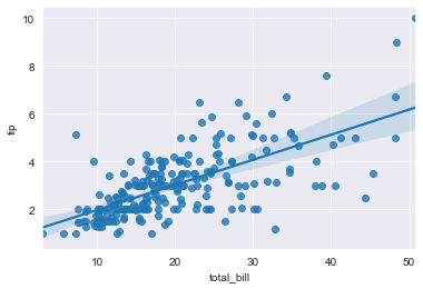 ==> regplot()은 선형 회귀선을 동시에 그려주는 함수
