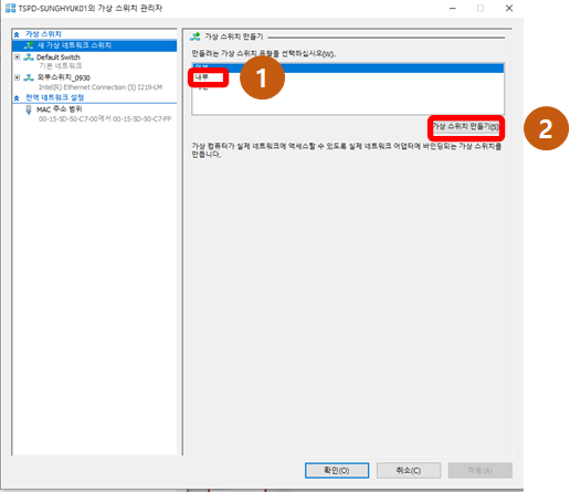 3. "내부" 클릭 ==> 가상 스위치 만들기