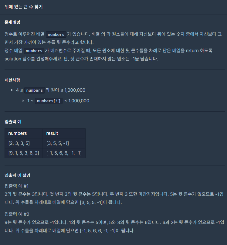★스택★뒤에 있는 큰 수 찾기[프로그래머스]