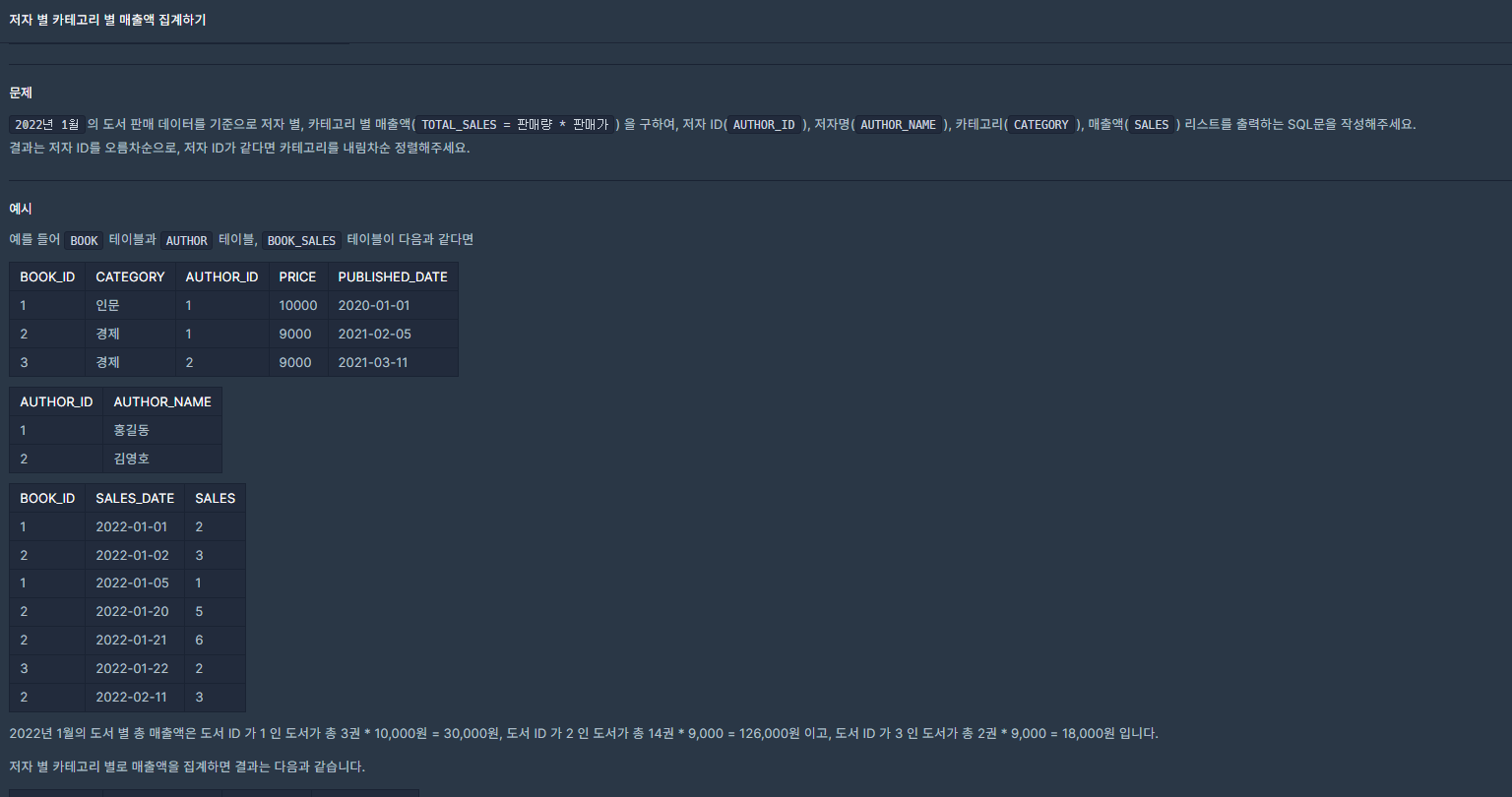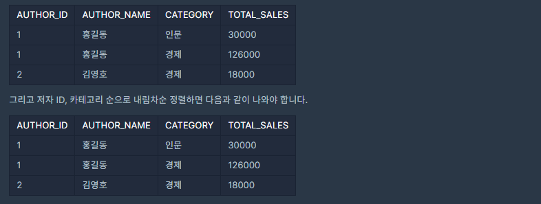 [프로그래머스 ORACLE SQL]저자 별 카테고리 별 매출액 집계하기★GROUP화 한뒤 더하기SUM()