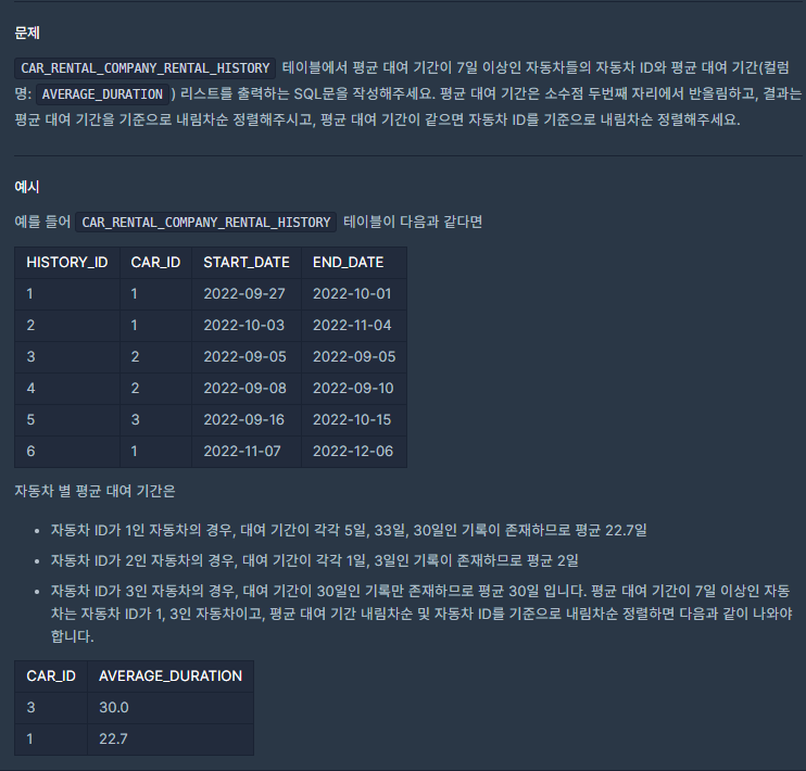 [프로그래머스 ORACLE SQL]자동차 평균 대여 기간 구하기★날짜 뺄때는 1을 더하자!
