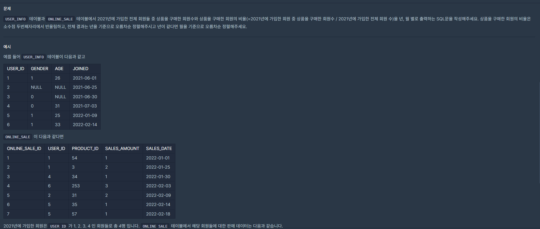 [프로그래머스 ORACLE SQL]상품을 구매한 회원 비율 구하기★INNER JOIN★DISTINCT